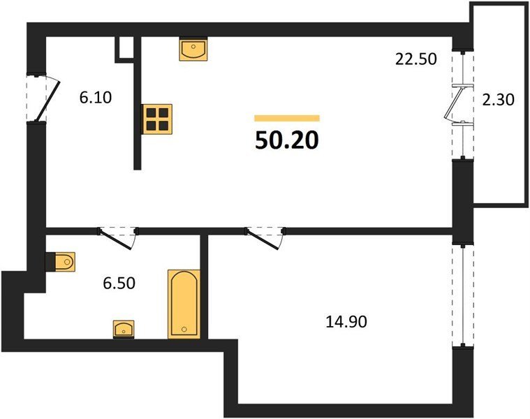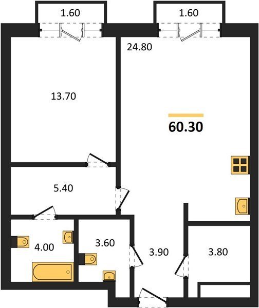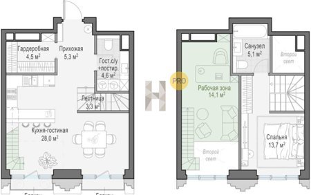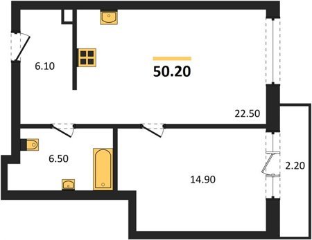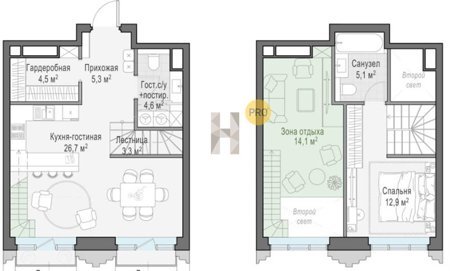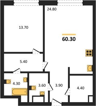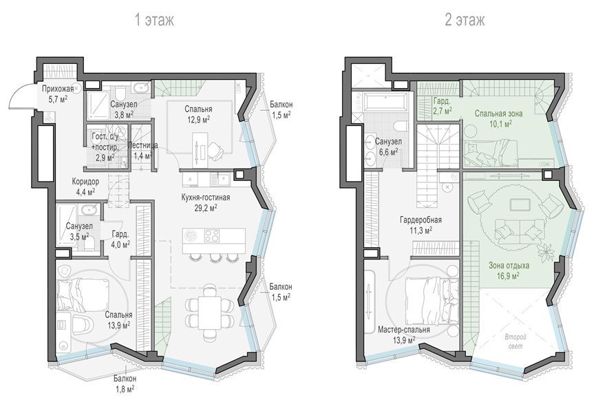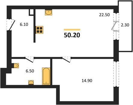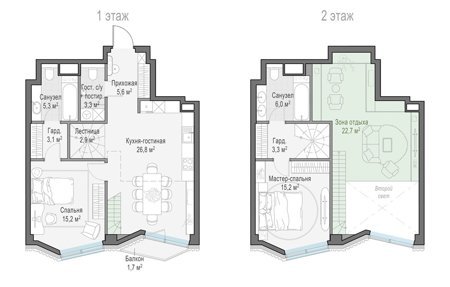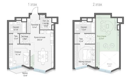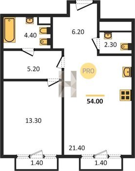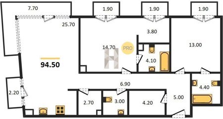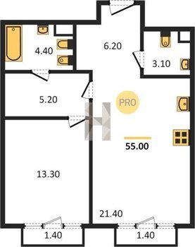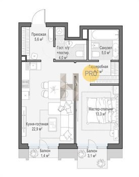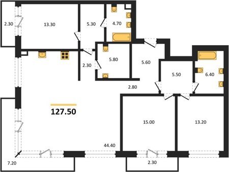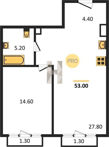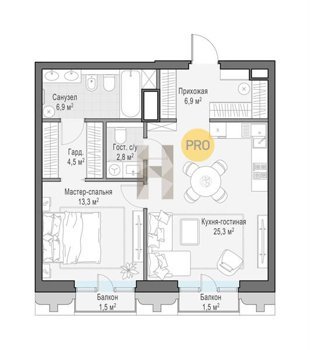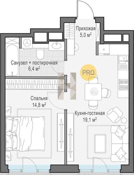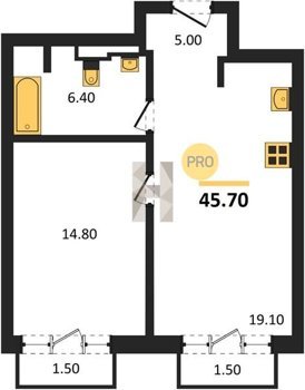 Площадь от 44.9 м2