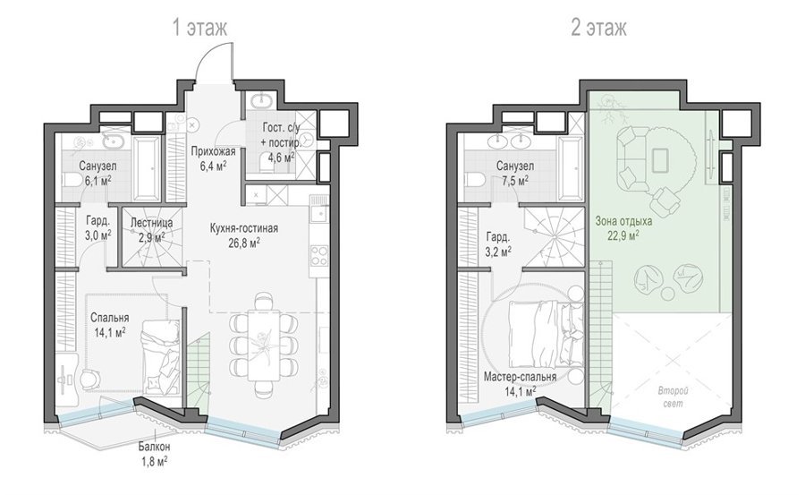 Строгая и разнообразная современная архитектура гармонично обрамляет просторный двор-сад, а продуманное расположение домов дарит ощущение уютной приватности и великолепные виды.