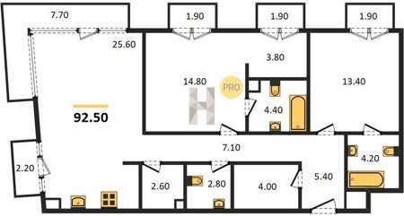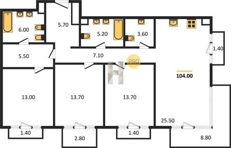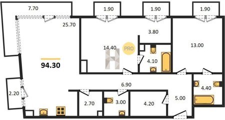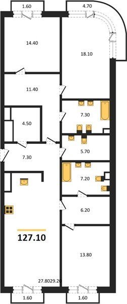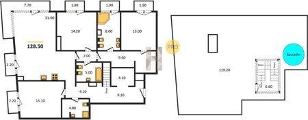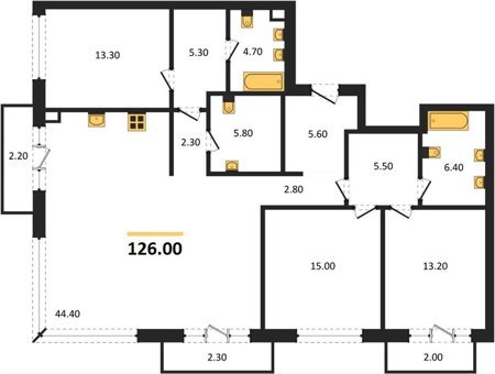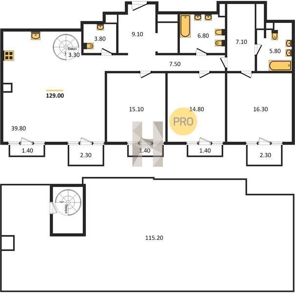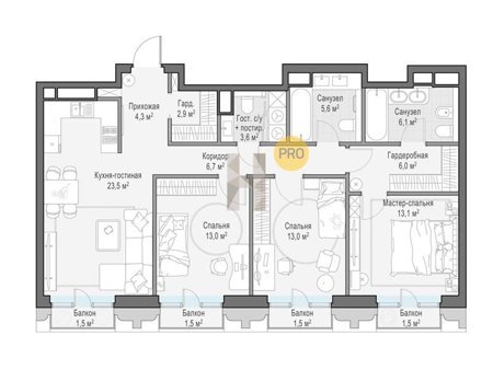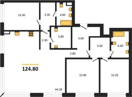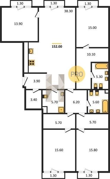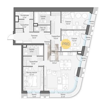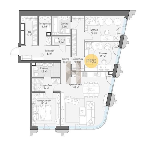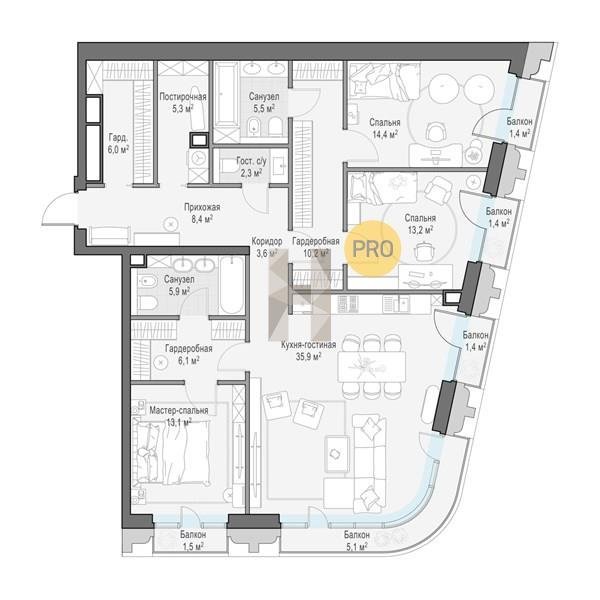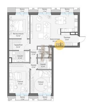 Площадь от 125.2 м2