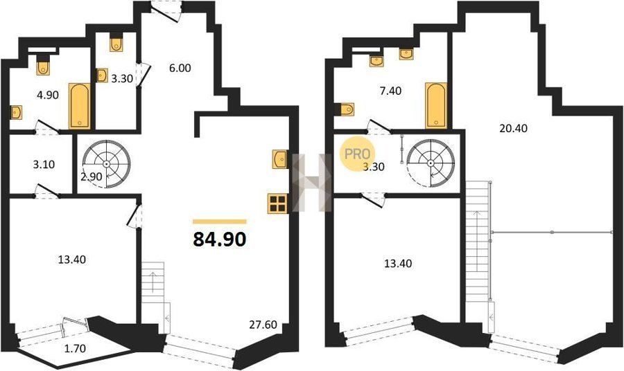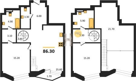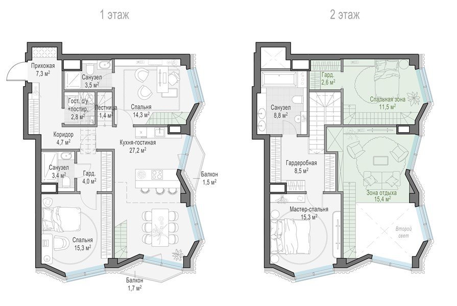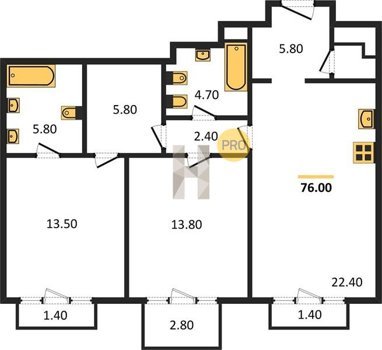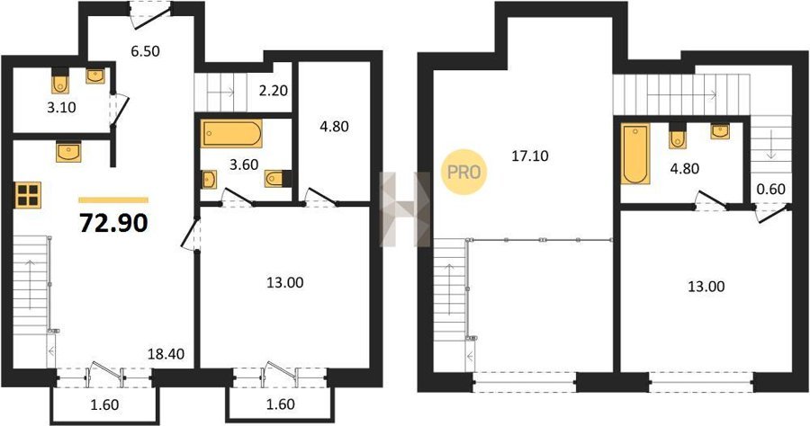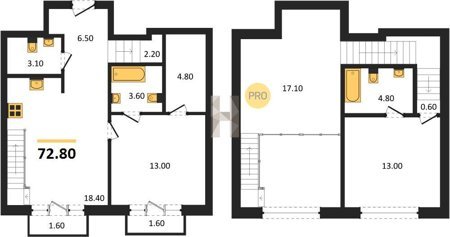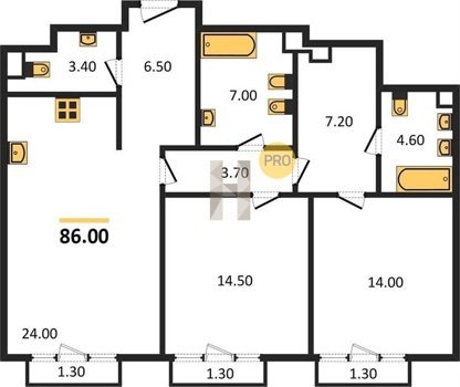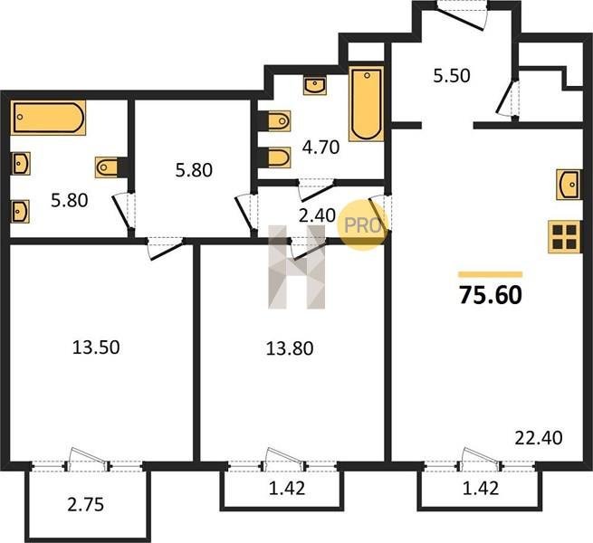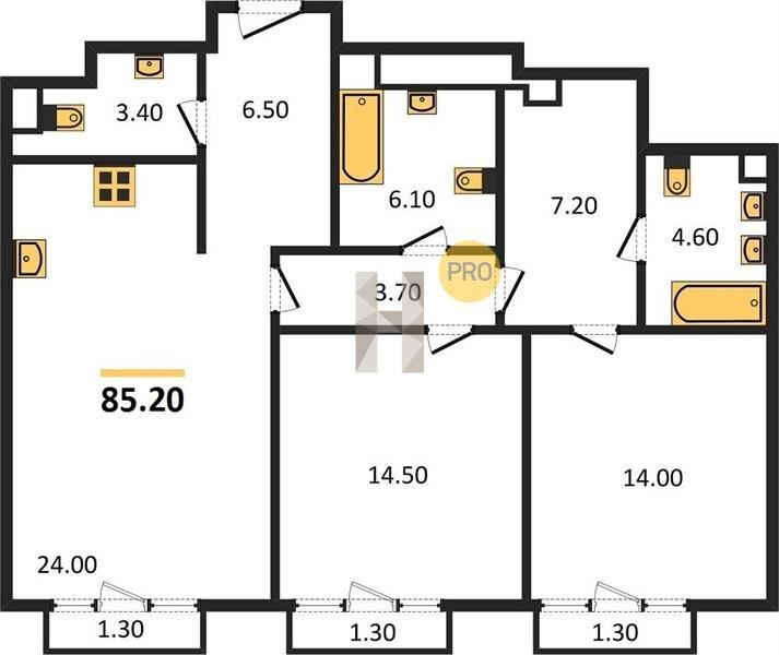 Площадь от 72.3 м2