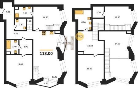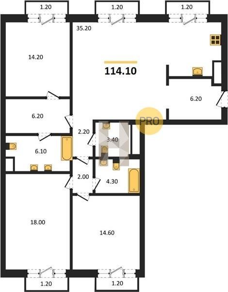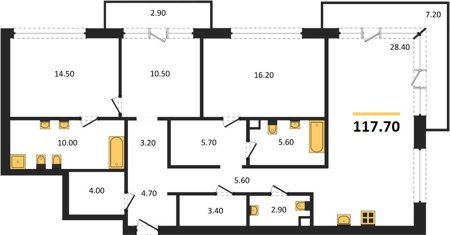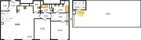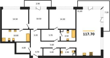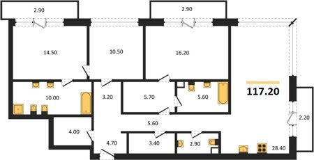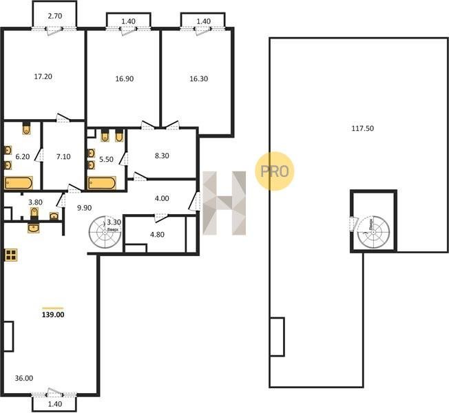 Площадь от 116.6 м2