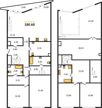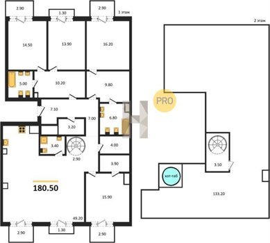 Площадь от 180.2 м2