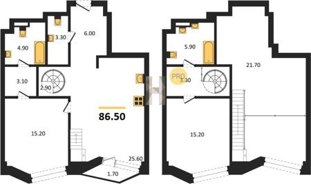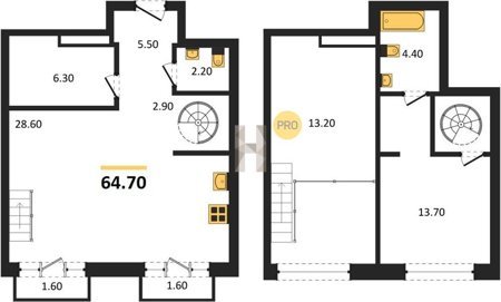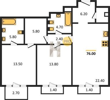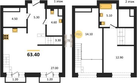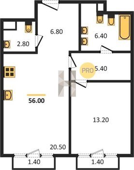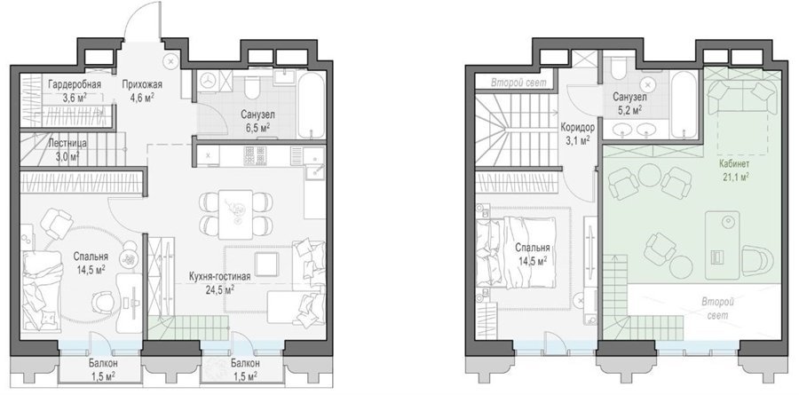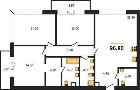 Площадь от 64.5 м2