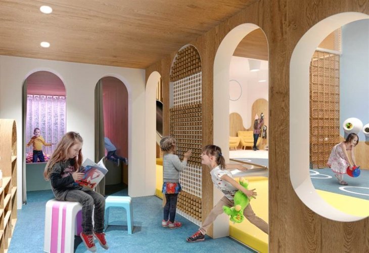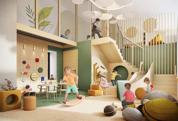 Включает две детские площадки и игровую комнату