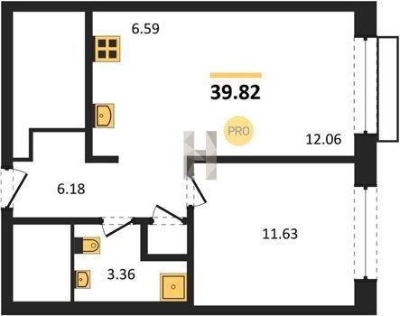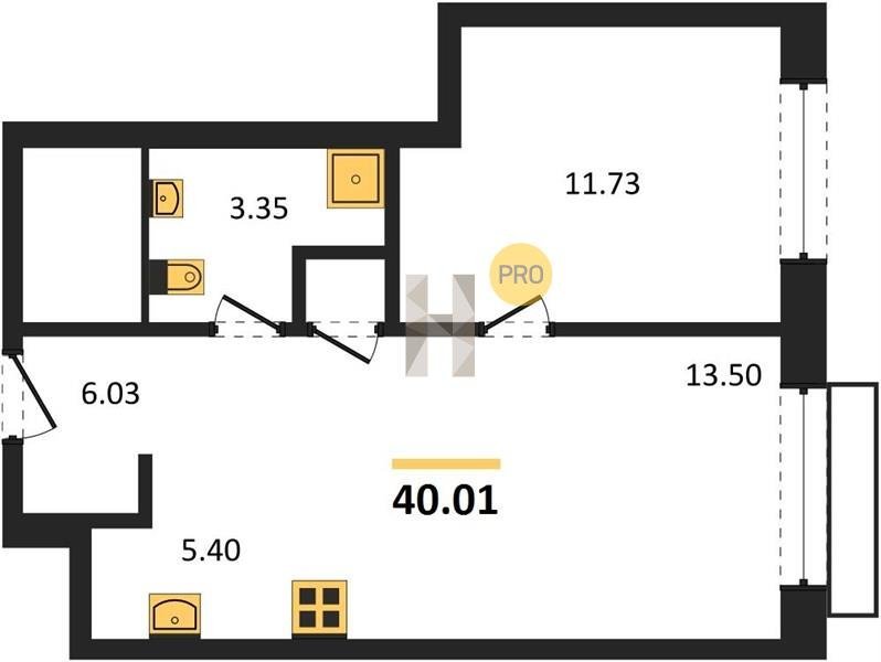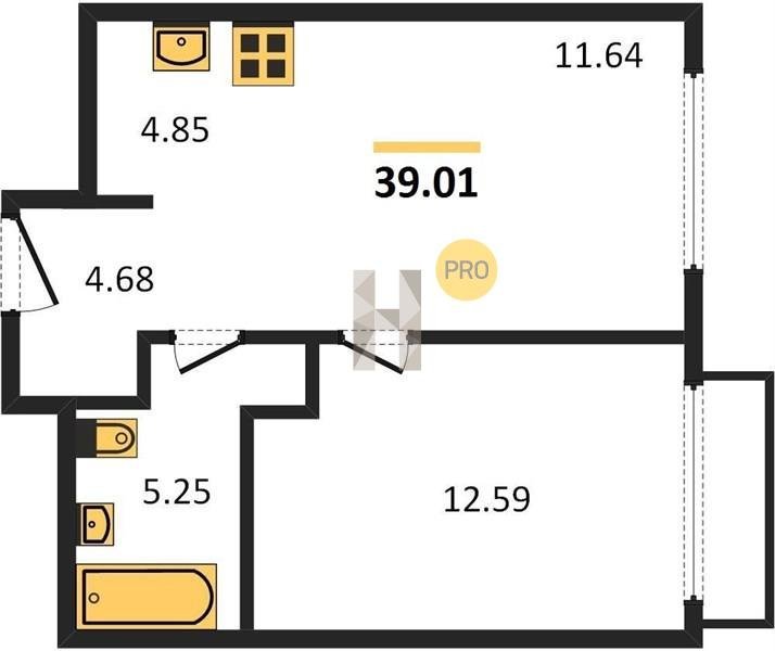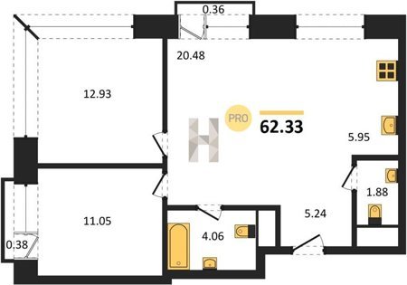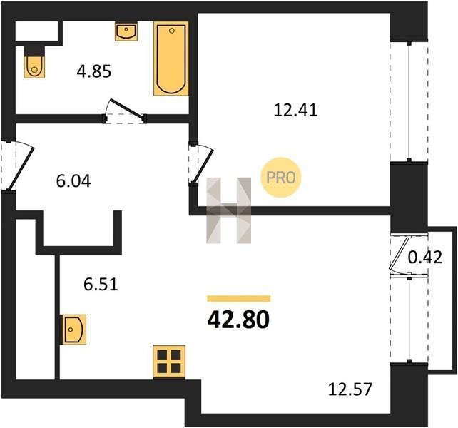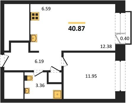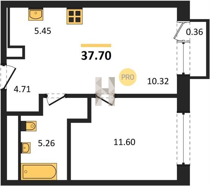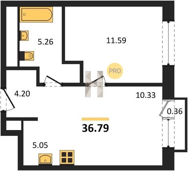 Площадь от 36.79 м2