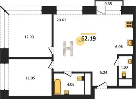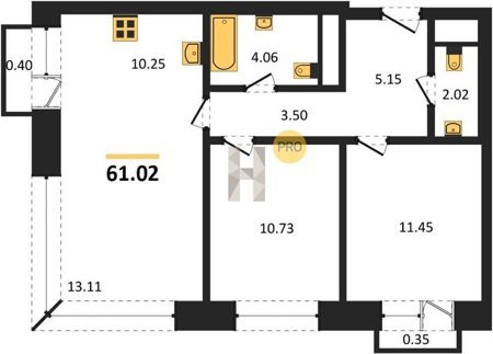 Площадь от 61.02 м2