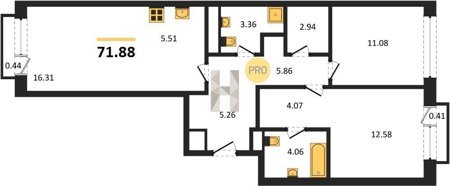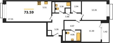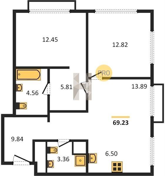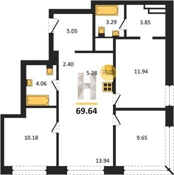Площадь от 69.64 м2