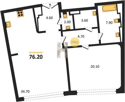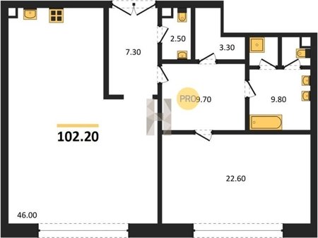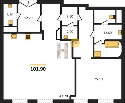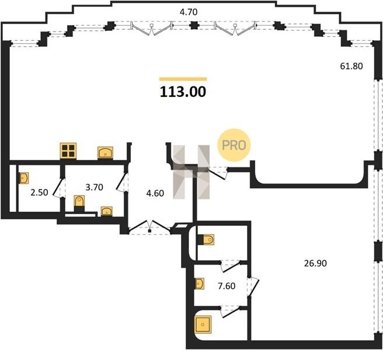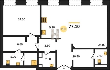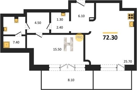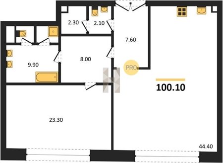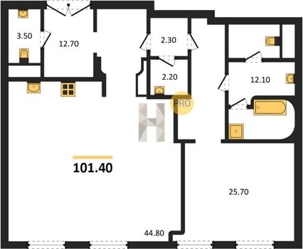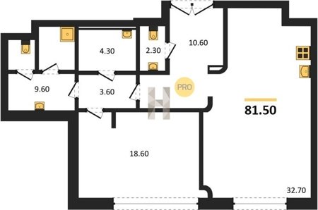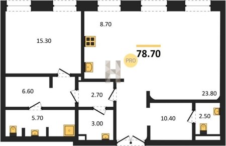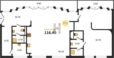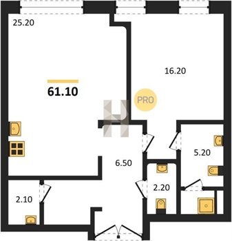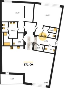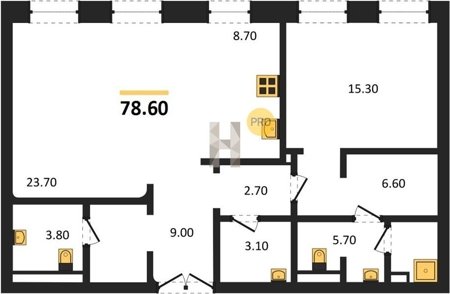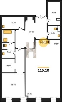 Площадь от 60.8 м2