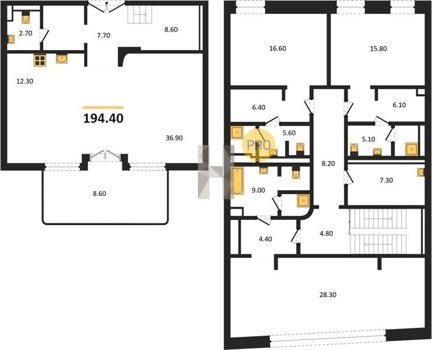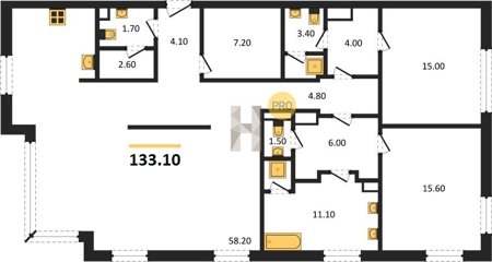 Площадь от 130.4 м2