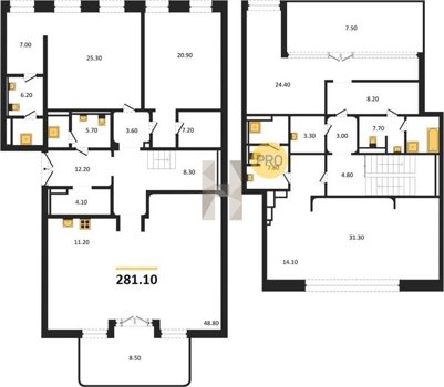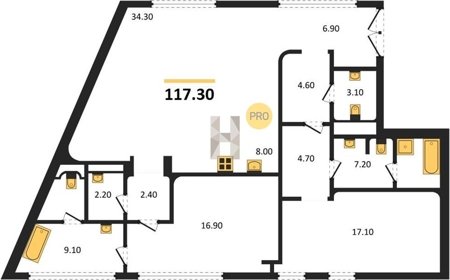 Площадь от 204.7 м2