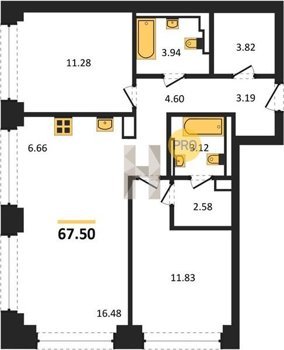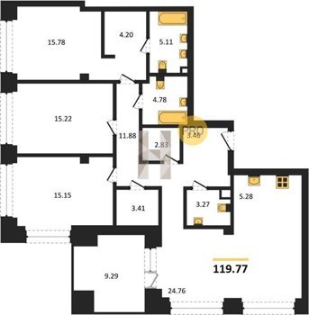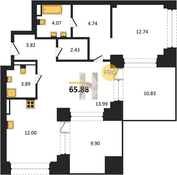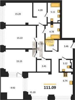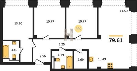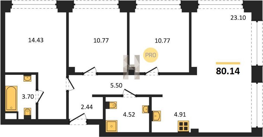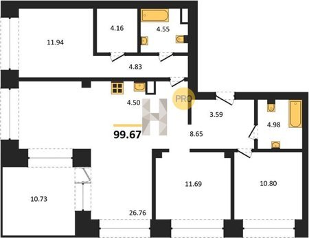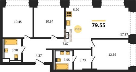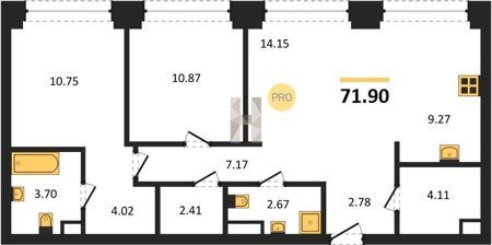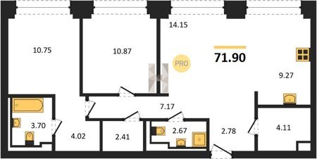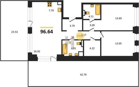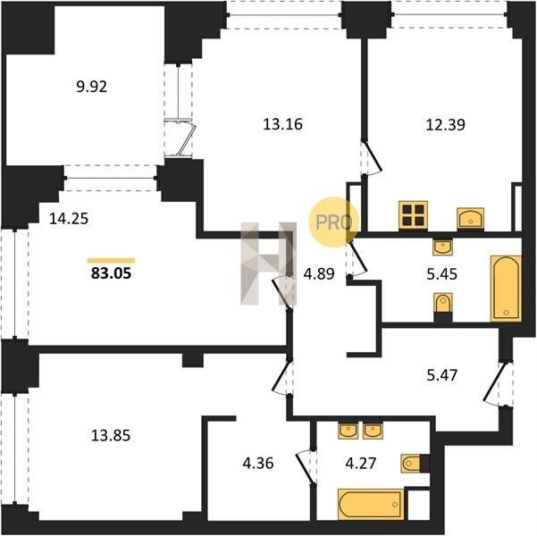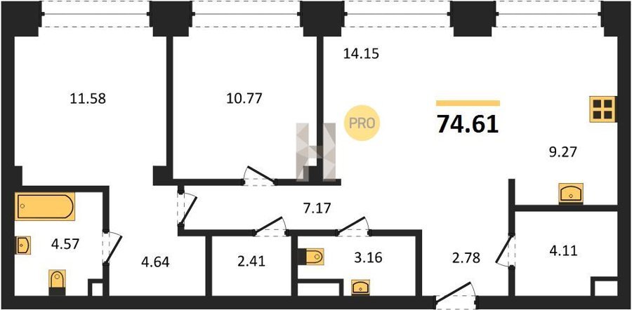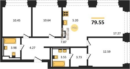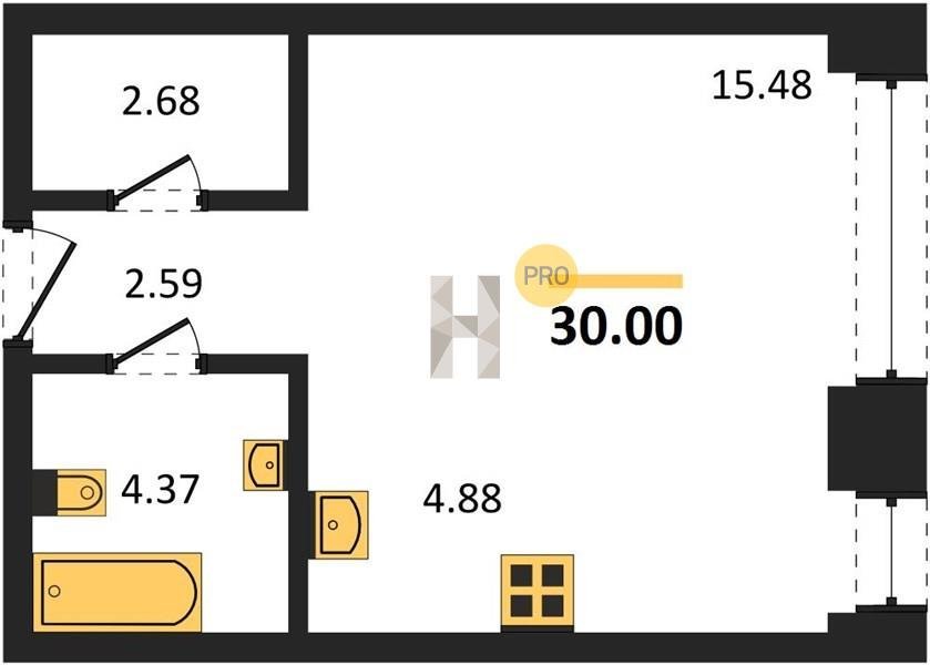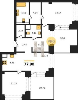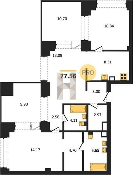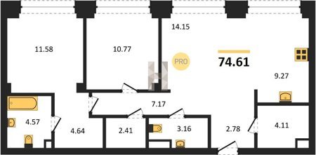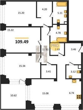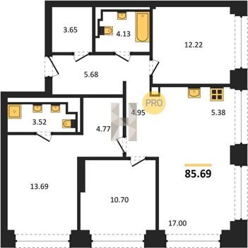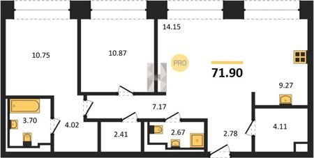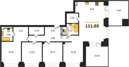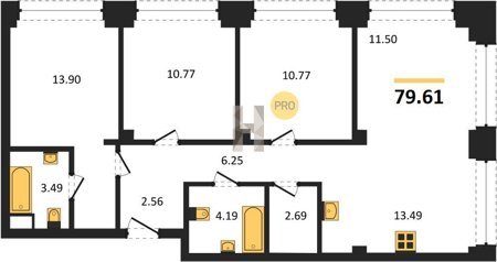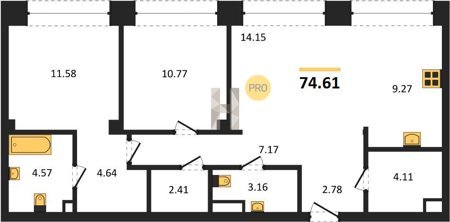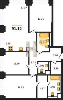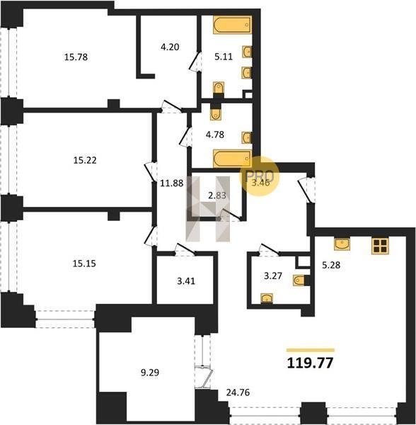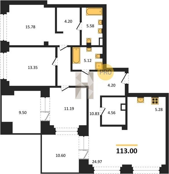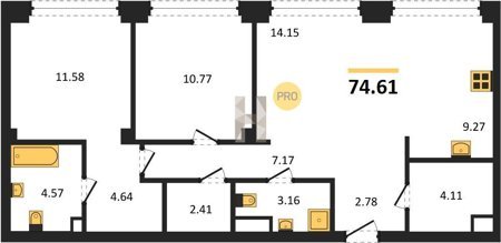 3.25 м высота потолка типовой квартиры 1 очереди (это 3 корпуса) и до 7.7 м высота потолка пентхауса.