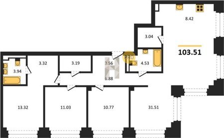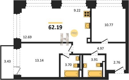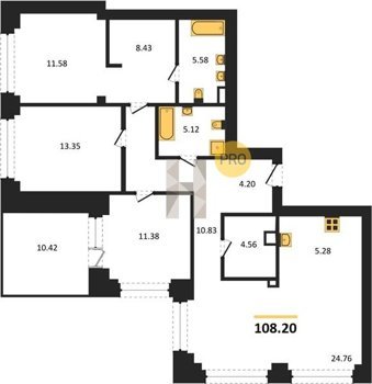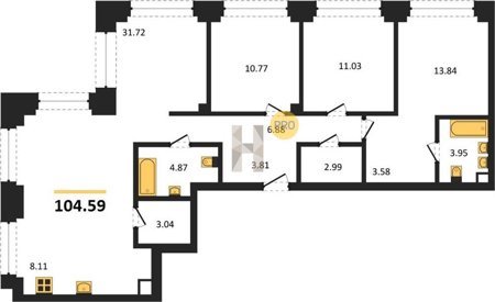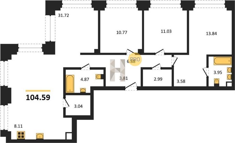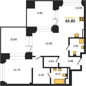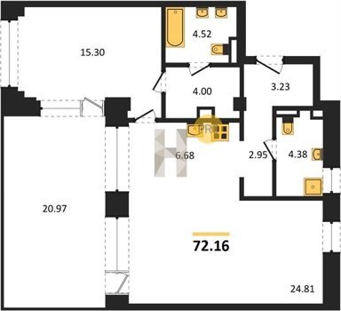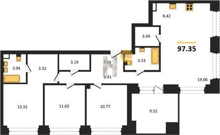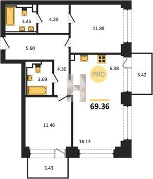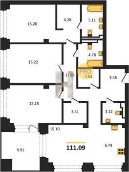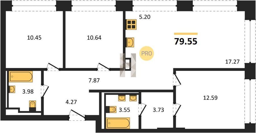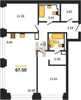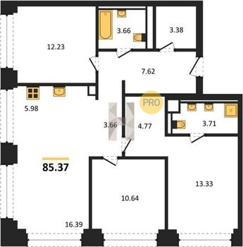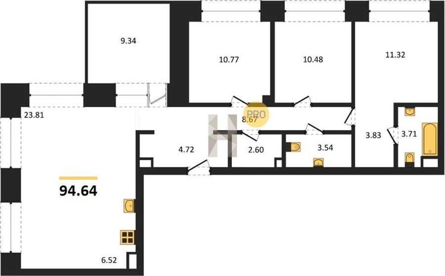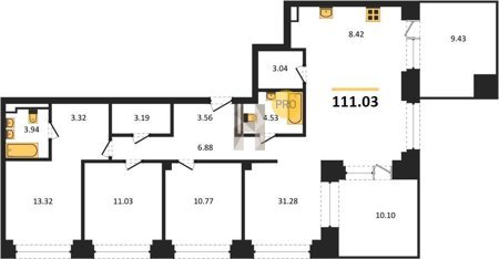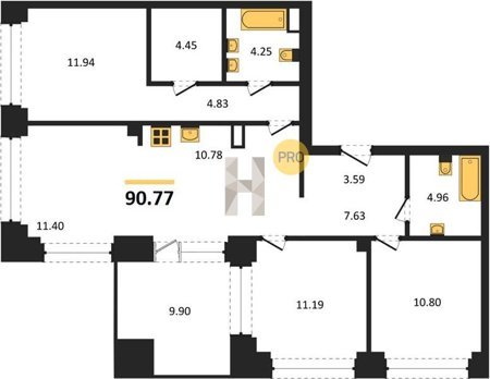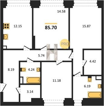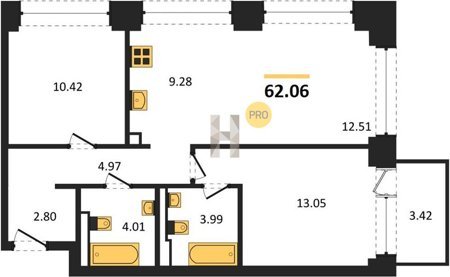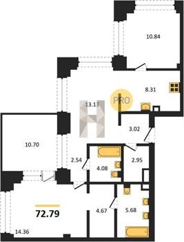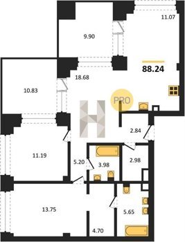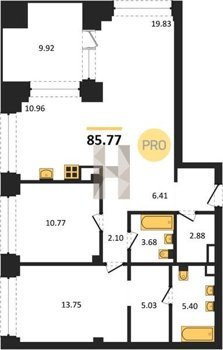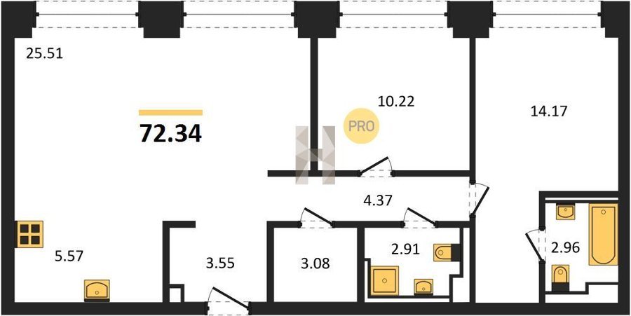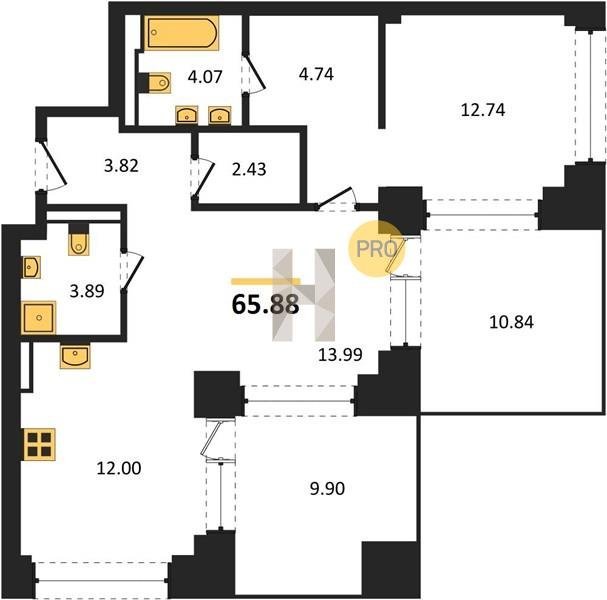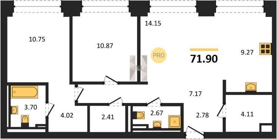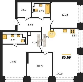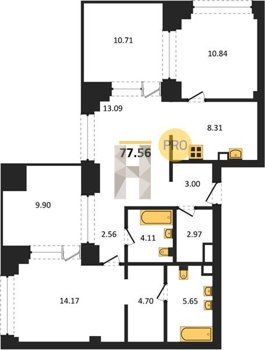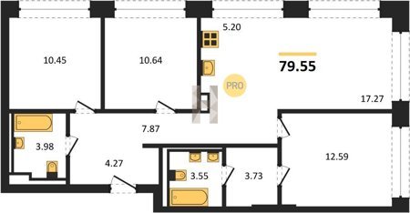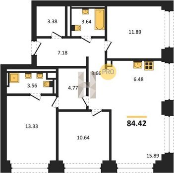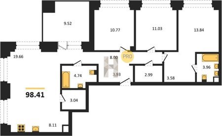 3.25 м высота потолка типовой квартиры 1 очереди (это 3 корпуса) и до 7.7 м высота потолка пентхауса.