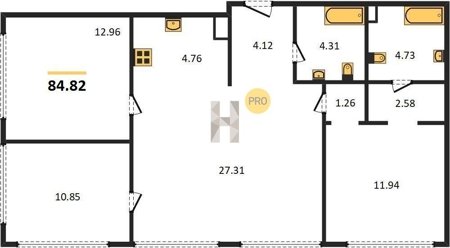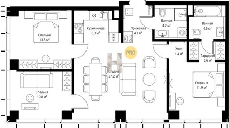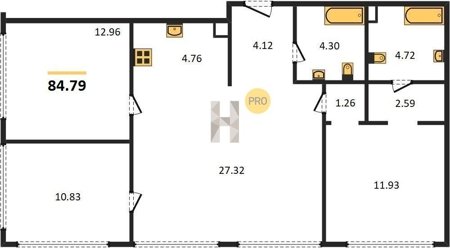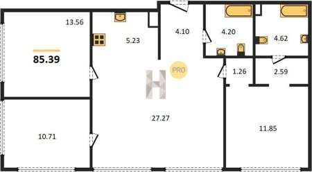 Площадь от 27.1 м2