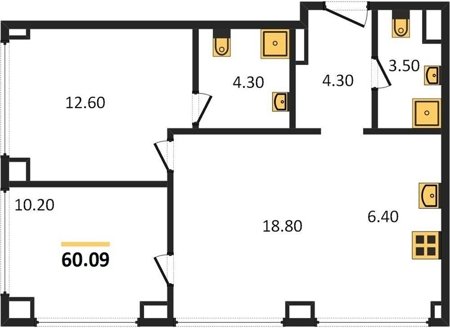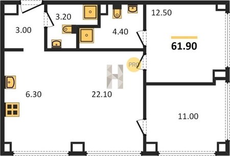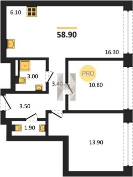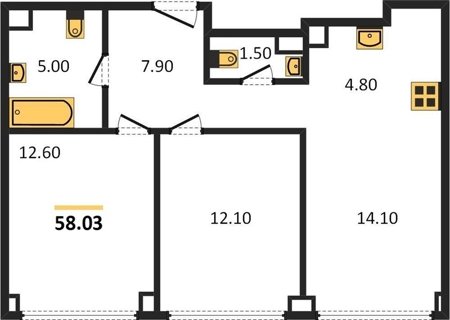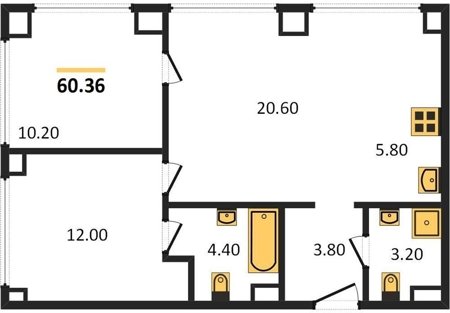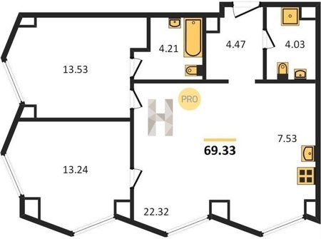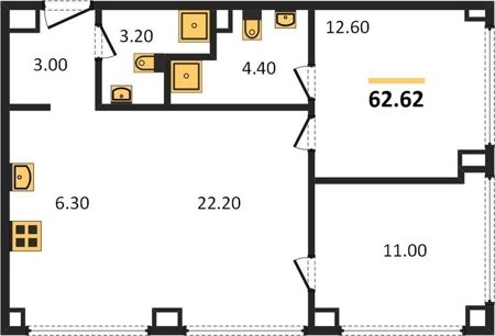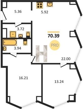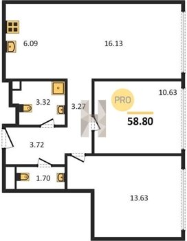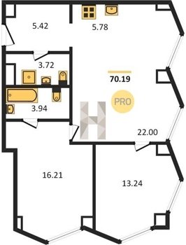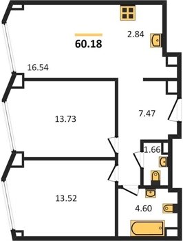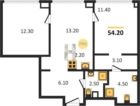 Площадь от 54.2 м2
