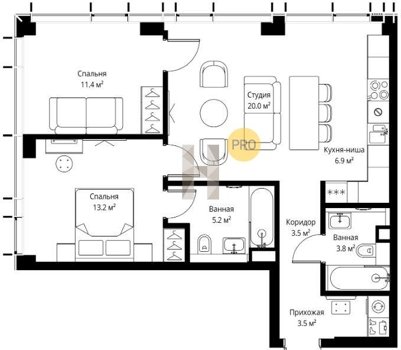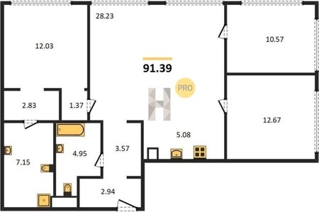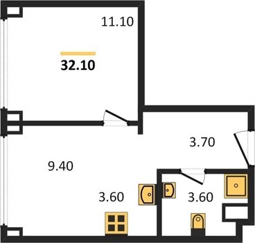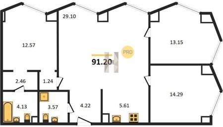 Площадь от 29.1 м2