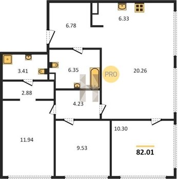 Площадь от 81.5 м2