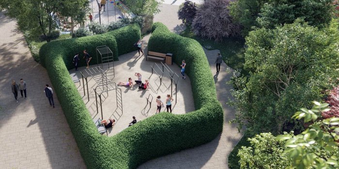 В закрытом охраняемом дворе-парке нет машин и посторонних